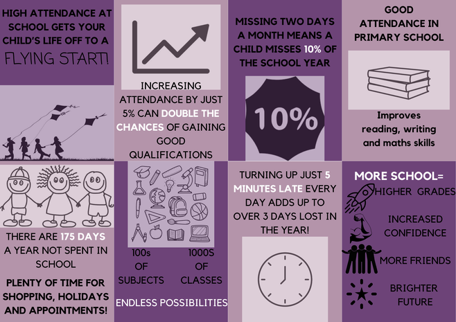 - A separate attendance newsletter is shared each half term which contains useful information and class percentages.