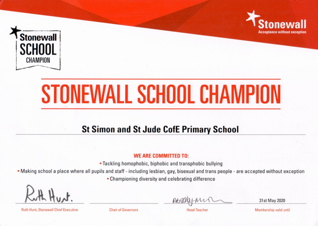 Here at Simon and St Jude we are committed to tackling and preventing bullying of any sort: we are Stonewall School Champions!